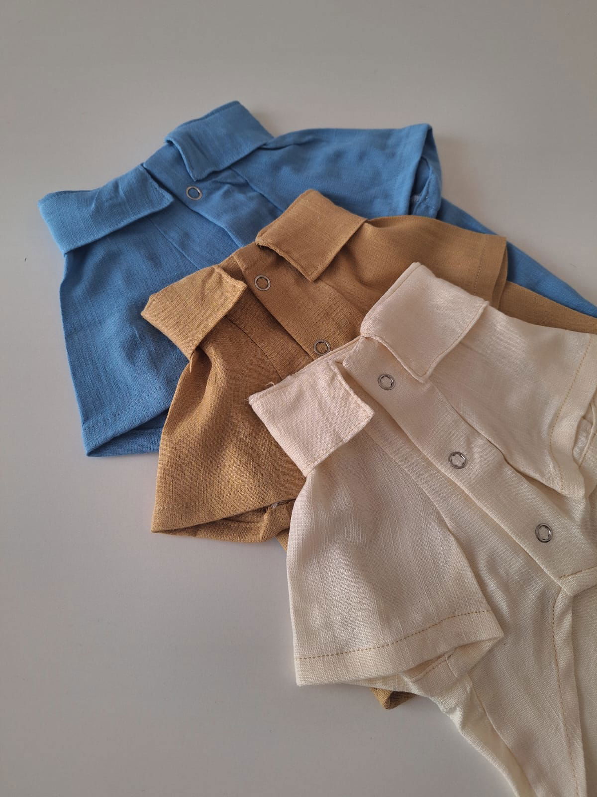 Camisas confeccionadas en lino. Con botones a presion. Los tonos pueden variar segun la partida.